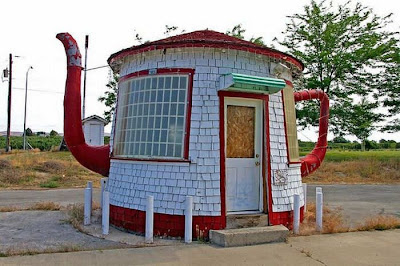 The Teapot Dome Service Station in Zillah, Washington is one example of novelty architecture listed on the U.S. National Register of Historic Places. Many such novelties were constructed as roadside attractions as the national highway system in the United States expanded during the 1920s and 1930s.